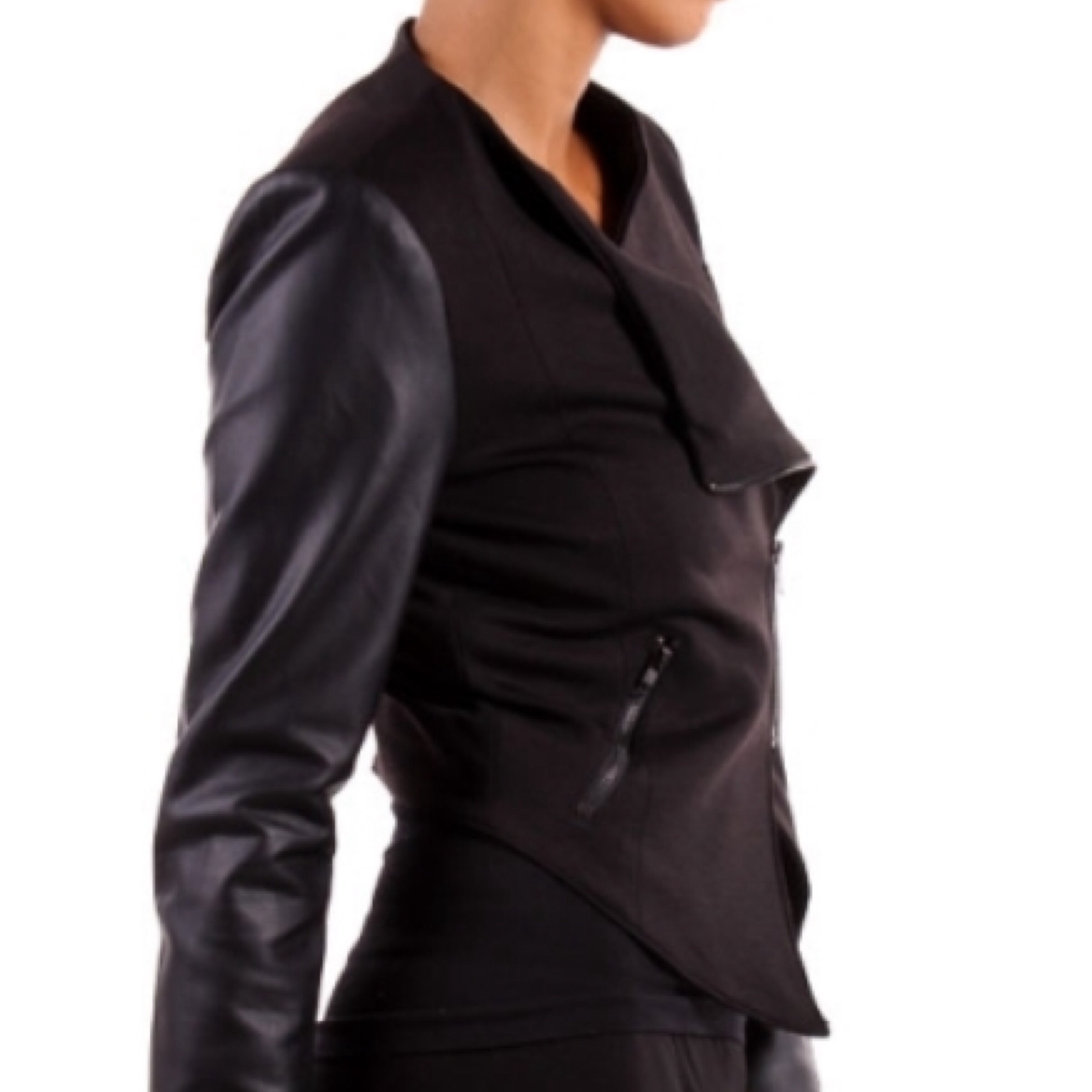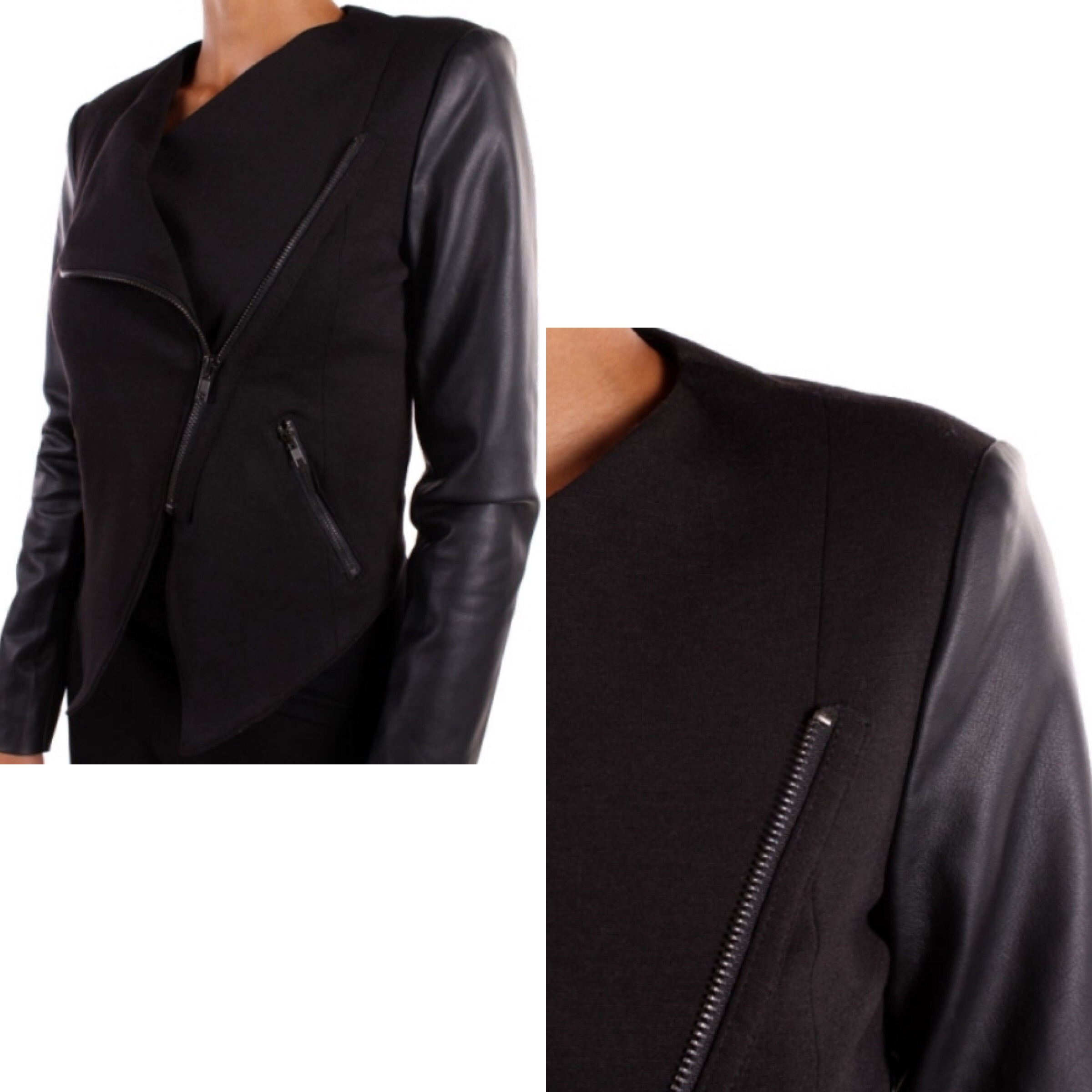 Lightweight Jacket Perfect for the Fall....Faux Leather Sleeves with Zipper Detail.