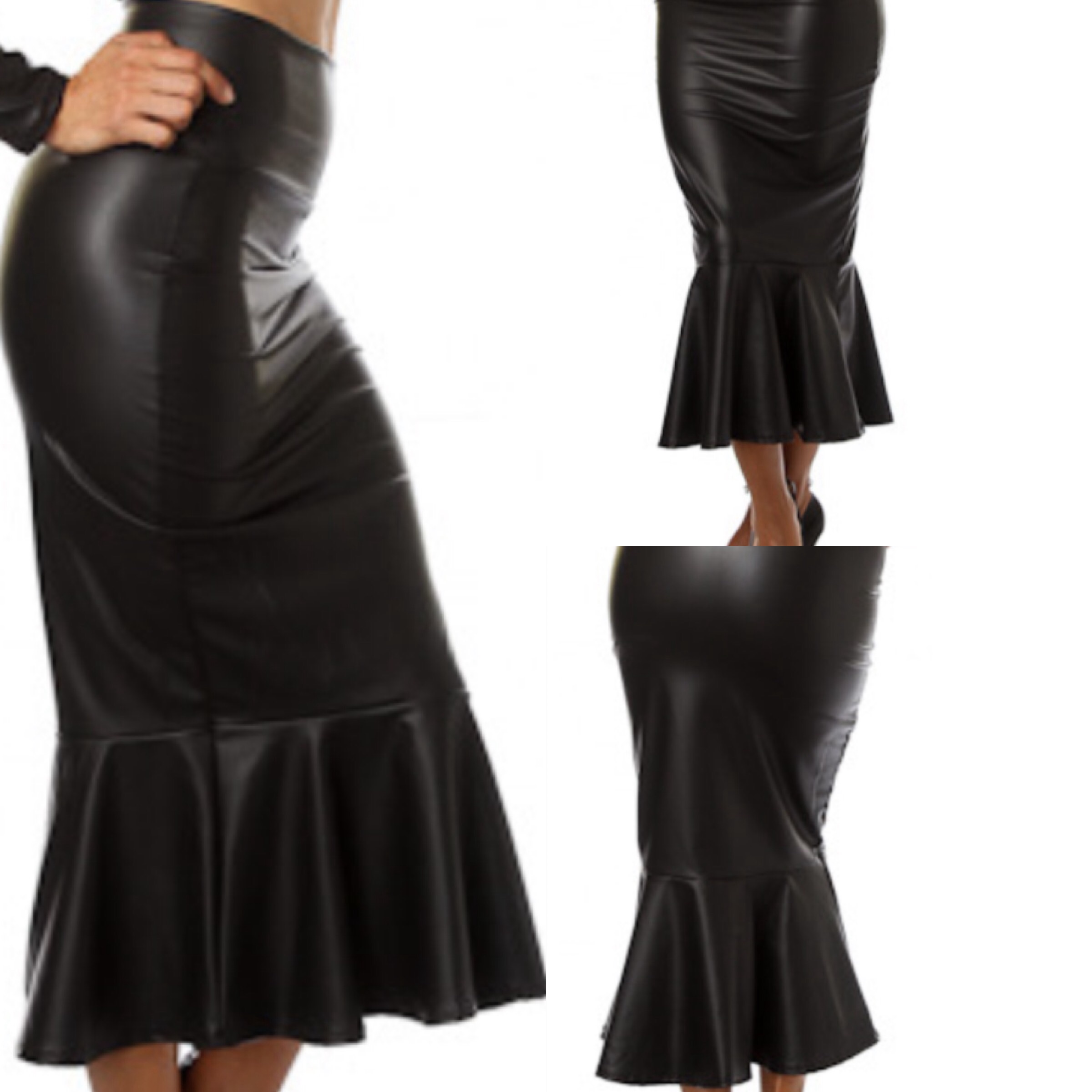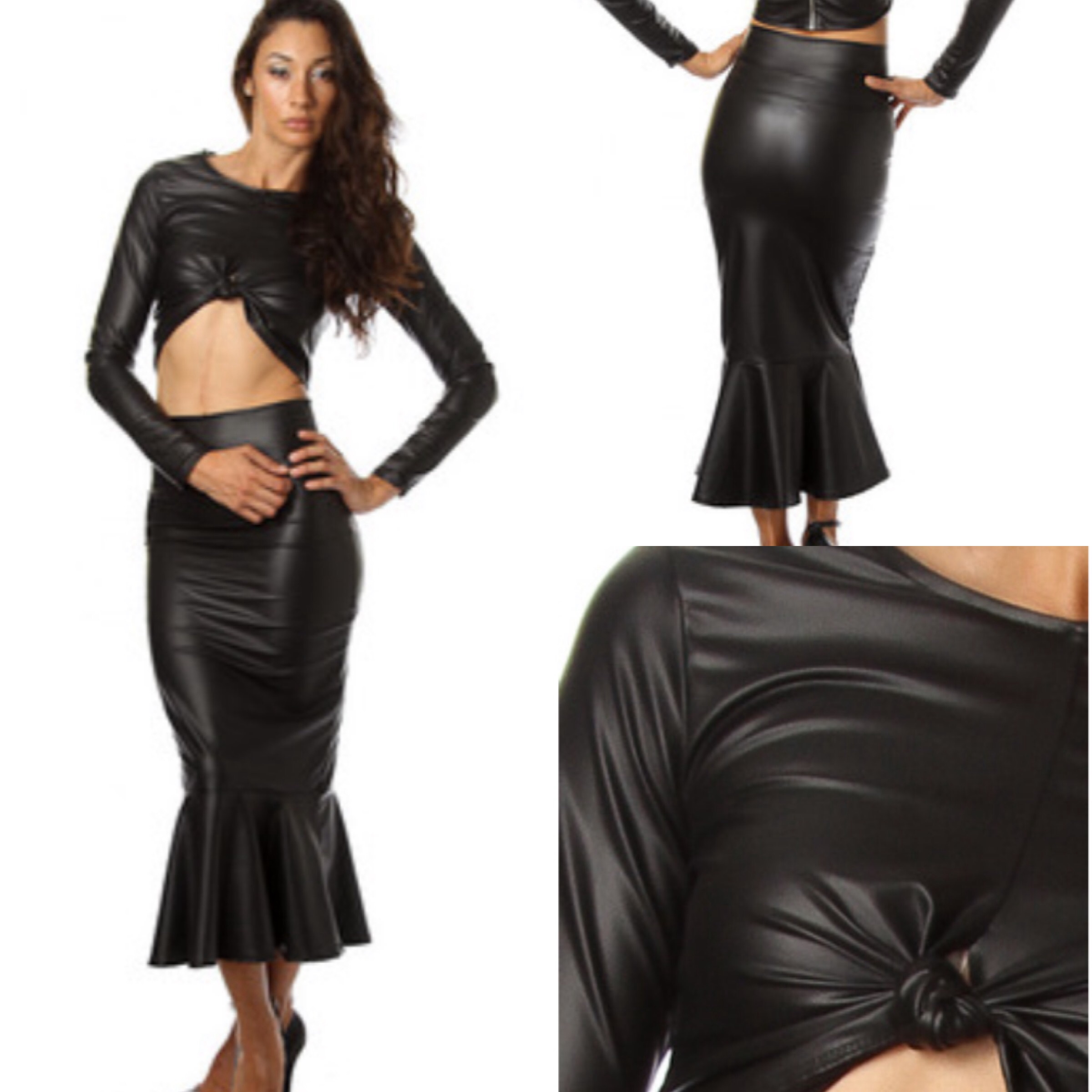 Faux Leather Knit Long Sleeve Crop Top & Faux Leather Trumpet Skirt Love the set or Buy Individually and Pair Separately 100% Poly Knit Leather