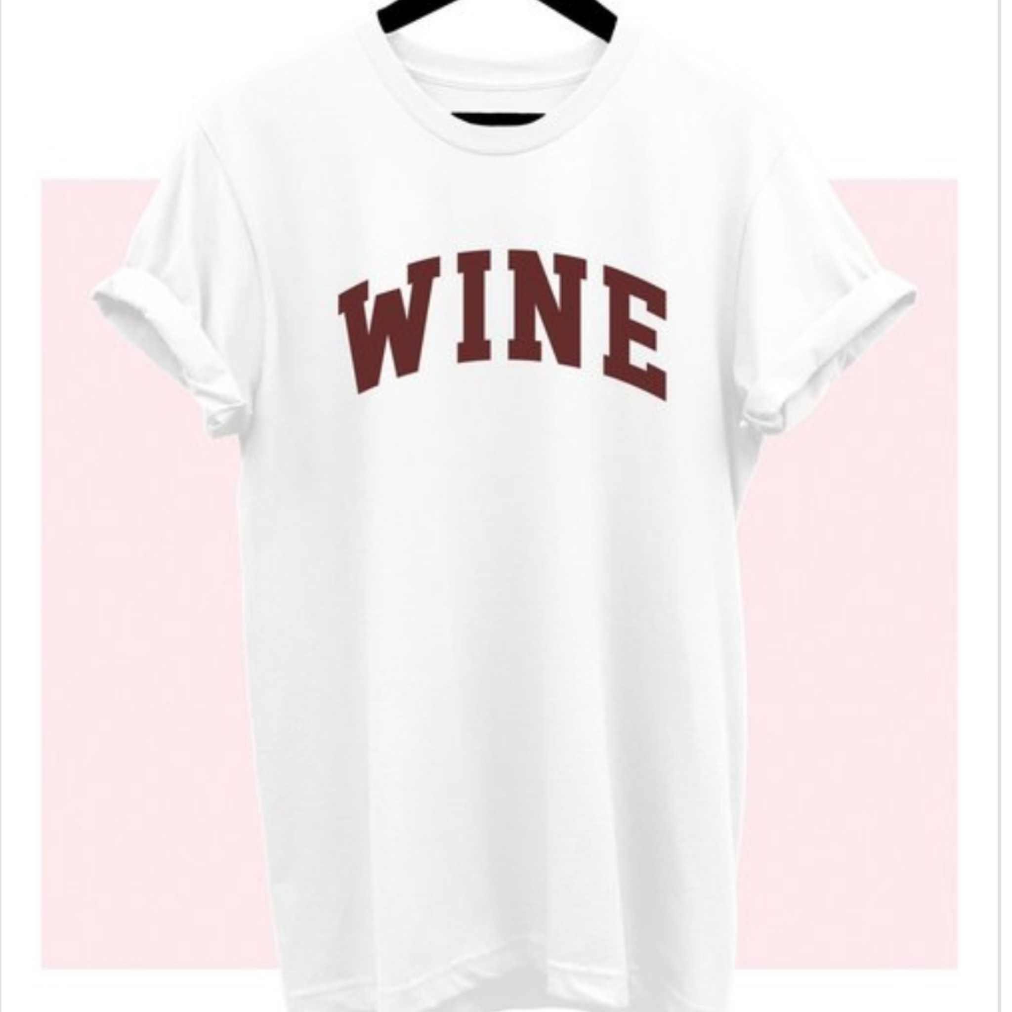 "Wine" Wording Graphic Tee White with Burgundy Writing Short Sleeve Designed for Comfort and Style Classic Fit/Unisex Sizing 100% Premium Cotton
