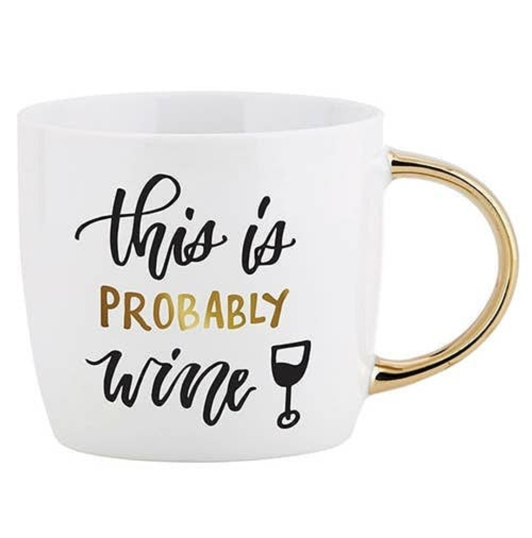 Metallic Gold Handle · Material: Stoneware · Size: 3.25" H / 14 oz · Care Instructions: Hand Wash Only - Do Not Microwave